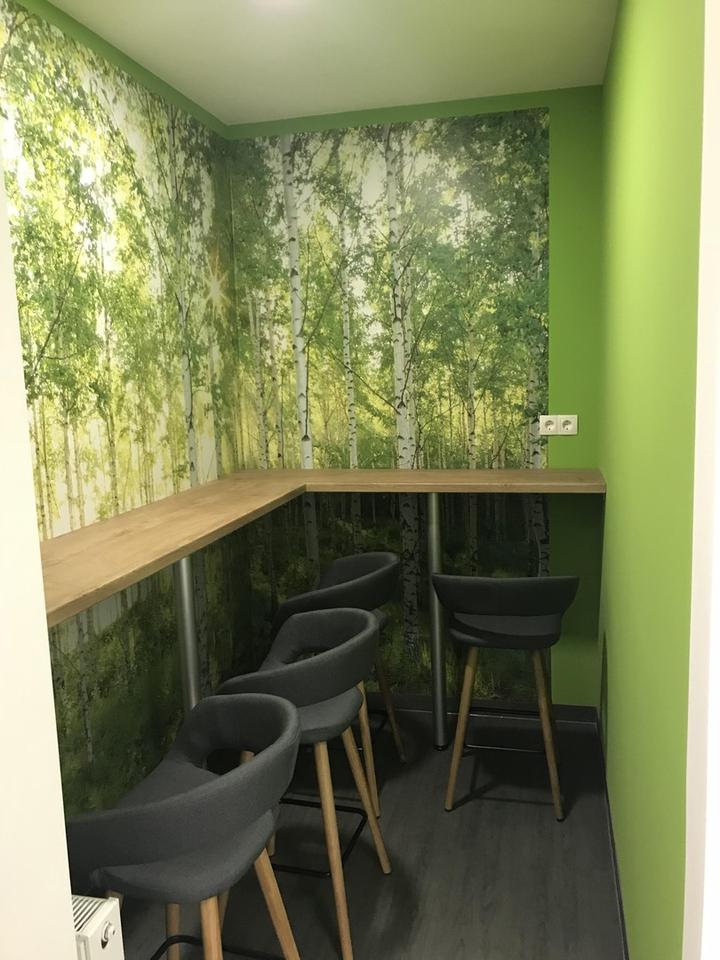 Die angebotene Bürofläche verfügt über moderne, arbeitsplatzgerechte LED Beleuchtung, anthrazitfarbenen Teppichboden und ist mit weißer Raufasertapete tapeziert. Alle Büros wurden einheitlich mit innenliegenden Lamellenjalousien in lichtgrau ausgestattet. Den Mietern stehen eine moderne, voll ausgestattete Teeküche, modernisierte und behindertengerechte Sanitärräume sowie zwei Besprechungsräume für eine gemeinschaftliche Nutzung zur Verfügung. Die Allgemeinflächen werden anteilig zu der angemieteten Bürofläche hinzugerechnet. Beheizt wird das Gebäude mit Gas. Es verfügt über eine neuwertige Brennwerttherme der Marke Viessmann. Bei den Nebenkosten von € 3,00/m² handelt es sich um eine Nebenkostenpauschale, die sämtliche anfallende Nebenkosten umfasst. Lediglich die Kosten für Internet und Telefon sind von jedem Mieter selber zu tragen.