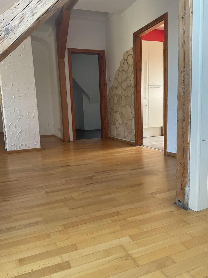 Es ist eine helle freundliche Wohnung .Die beiden größeren Zimmer sind mit Pakett,Küche und Bad mit Vinylböden und ein kleines Zimmer mit Laminat ausgestattet.Das Bad wurde 2010 renoviert und mit neuen Rohren ausgestattet.Die Einbauküche ist voll funktionsfähig und mit Markengeräten ausgestattet.Im großen Wohnzimmer wurde 2022 von einem Schreiner ein Einbauschrank für Home Office eingebaut.Dieser bietet sehr viel Stauraum.Im Keller ist ein Kellerraum und in einem Waschraum ein Stellplatz für Waschmaschine und Trockner vorhanden.
