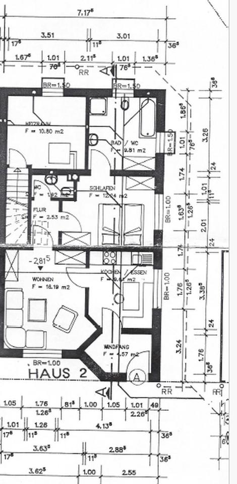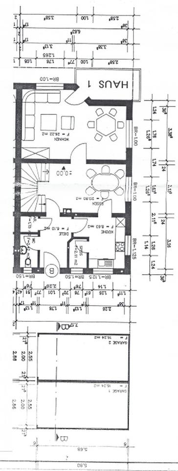 – eine DHH mit ca. 118 m² Wohnfläche, zusätzlichen 50 m² Nutzfläche und eigenem Gartenanteil (ca. 35 m²) sowie zwei PKW-Garagen und zwei PKW-Stellplätze sowie