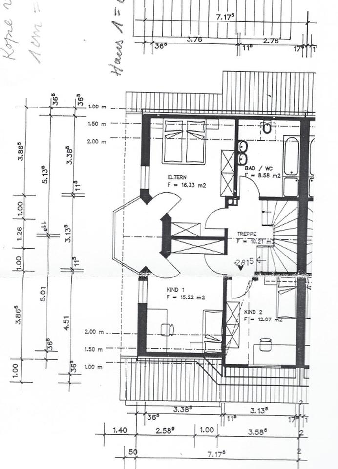 Parkettböden im Wohn-, Schlaf-, Kinderzimmer und Büro besonders schönes Treppenhaus mit kleiner Galerie.