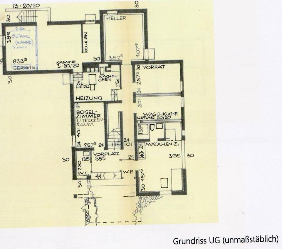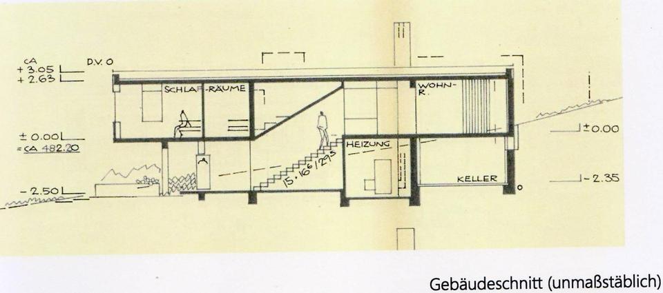 Bauart: freistehend, Massivbauweise, voll unterkellert (Hanglage)