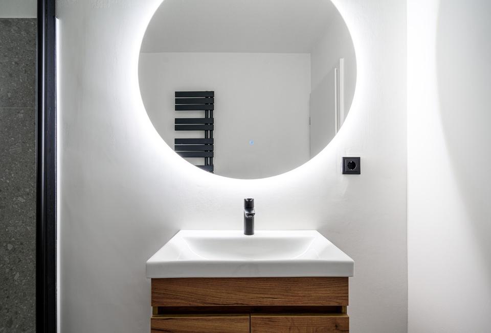 • Badezimmer: Terrazzofliesen, eigener Waschmaschinenanschluss, neue Dusche und neues WC, stylischer LED Spiegel, Handtuchheizer.