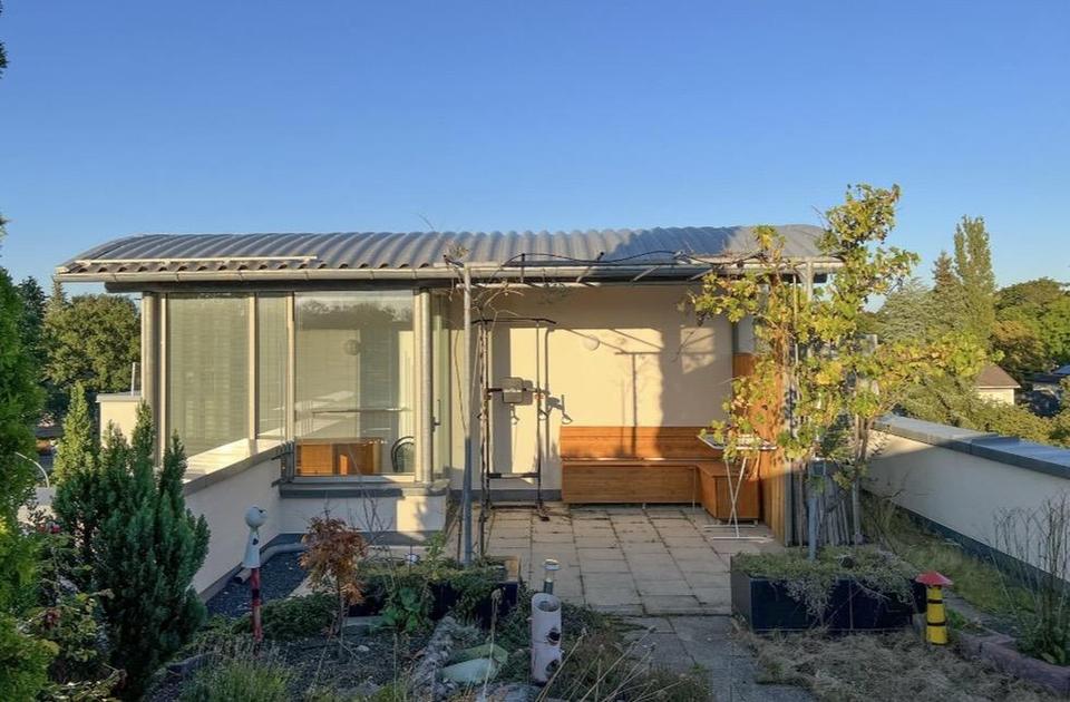 Der offene Grundriss über zwei Ebenen, lichtdurchflutete Räume und ein großzügiger Außenbereich mit Rundum-Blick ins Grüne schaffen ein exklusives Wohnerlebnis. Herzstück ist der ca. 119 m² große, uneinsehbare Dachgarten mit üppiger Bepflanzung, Terrasse, kleinem Teich, Brunnen, überdachtem Essbereich sowie einem zusätzlichen verglasten Raum – perfekt zum Entspannen und für die ganze Familie. Wasser- und Stromanschlüsse sind vorhanden. Die Wohnung bietet ca. 133 m² Wohnfläche sowie weitere ca. 86 m² Nutzfläche. Der großzügige Wohn- und Essbereich öffnet sich zum nach Süden ausgerichteten Balkon/Wintergarten. Ein Elternschlafzimmer mit großer Fensterfront sowie ein weiteres Zimmer mit direktem Zugang zum Wintergarten ergänzen das Raumangebot.