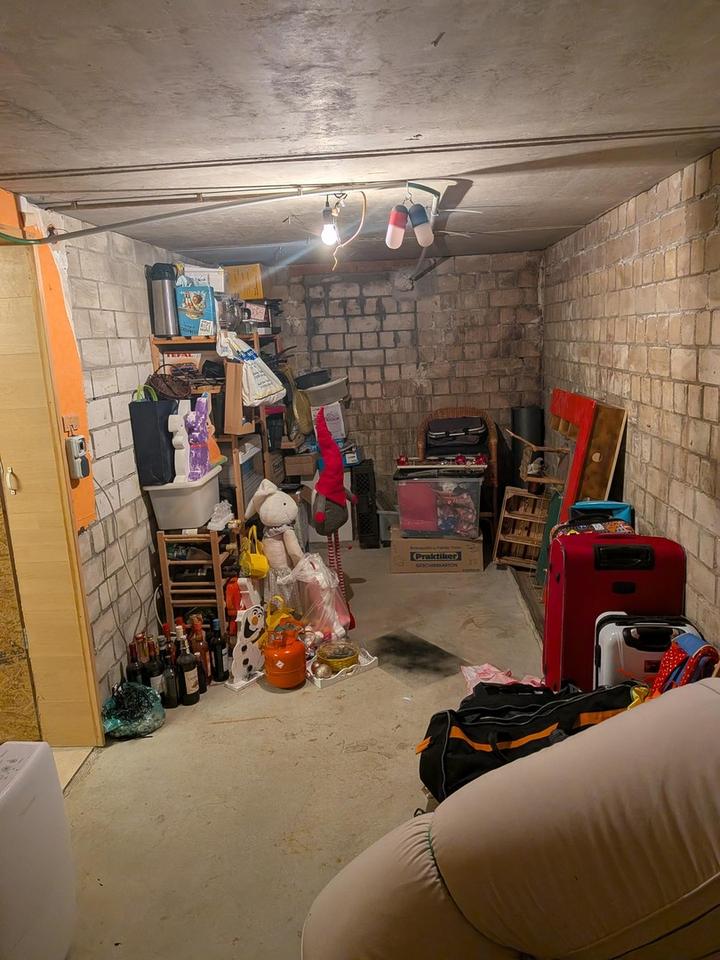 Der Vollkeller ist ebenfalls vom Flur des Erdgeschosses über eine massive Treppe