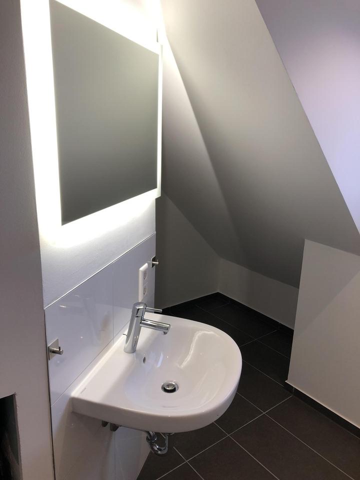 Bad mit Fußbodenheizung und Dusche sowie beheizter Handtuchhalter,