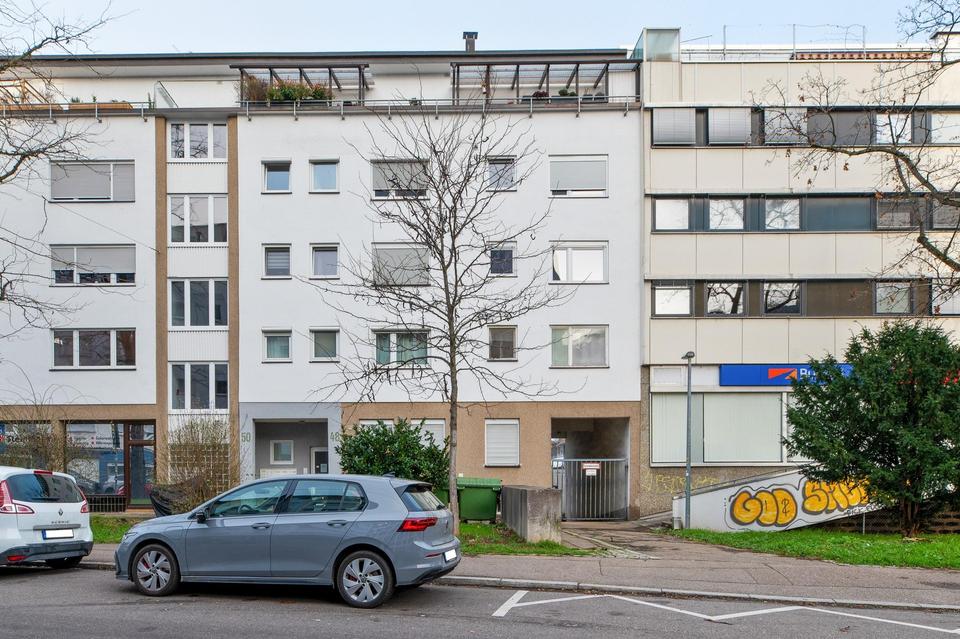 Perfekte ÖPNV-Anbindung: Die U-Bahn-Haltestelle „Olgaeck“ liegt direkt vor der Tür. Mit mehreren Linien ist man schnell überall in der Stadt – ob Hauptbahnhof, Uni, Flughafen oder Messe.