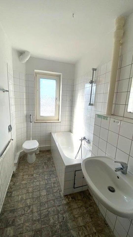 Das Badezimmer ist mit einer Badewanne ausgestattet und bietet durch das Fenster eine natürliche Belüftung sowie Tageslicht.