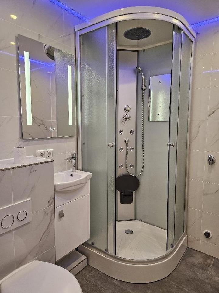 Die Wohnung hat neue Kassetten-Zimmertüren. Die Wände sind verspachtelt und neu gestrichen, das komplett neue Bad verfügt über eine hochwertige Dusche, Waschbecken, Toilette sowie Platz für eine Waschmaschine und Trockner. Die jeweiligen Anschlüsse wurden bereits installiert.