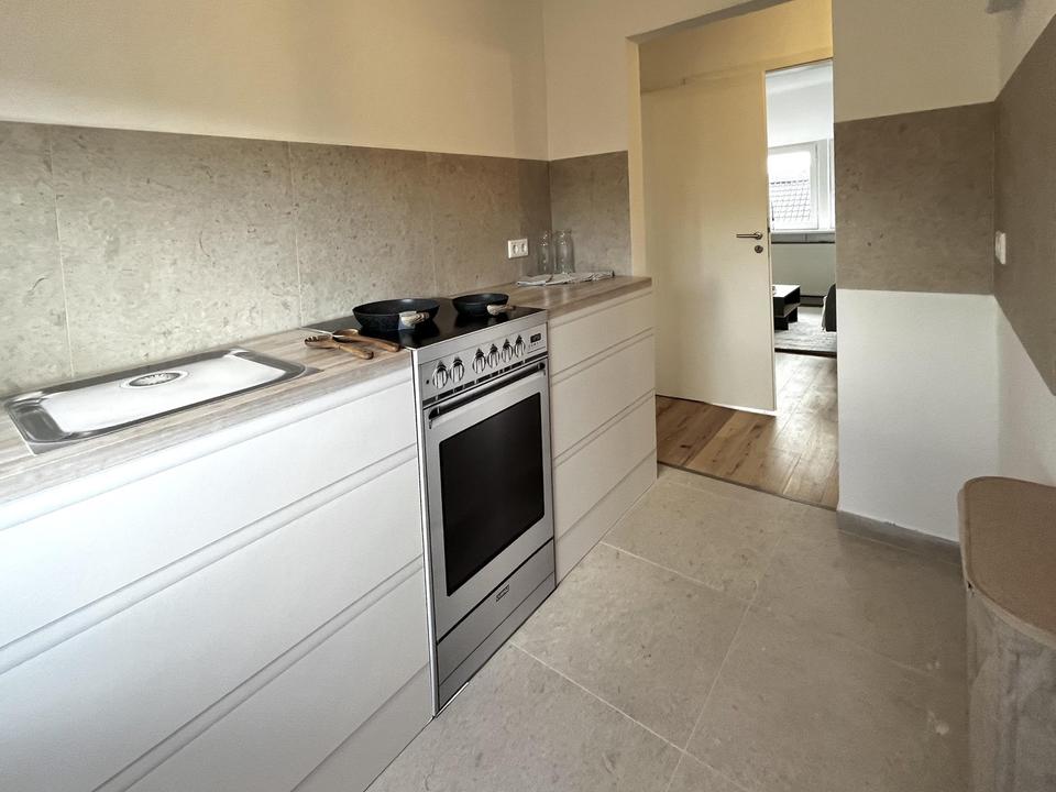– Modern gestaltete Küche sowie vollständig neu ausgestattetes Badezimmer mit Regendusche