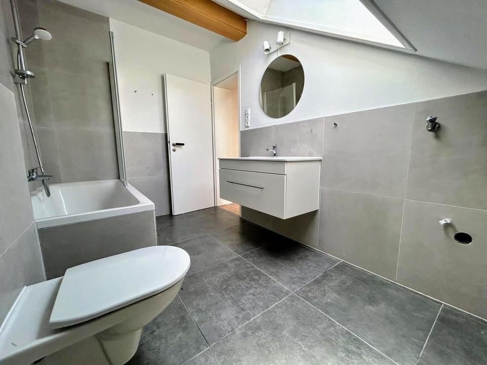 1 modernes Bad mit Dusche und Badewanne