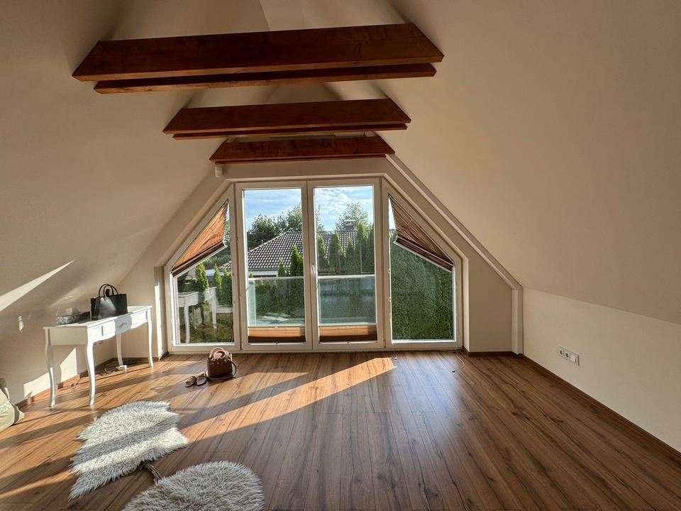 Das Schlafzimmer ist ein Ort der Ruhe und Eleganz. Es verfügt über einen maßangefertigten Einbauschrank, der sich harmonisch bis in den First einfügt, und schafft so ein stilvolles Ambiente. Die moderne Einbauküche – ausgestattet mit hochwertigen Geräten wie Herd, Ofen, Geschirrspülvollautomat, Kühlkombi und Radio – steht zur kostenfreien Übernahme bereit und macht die Küche zum Herzstück des Hauses. Eine integrierte Wassereinigungsanlage sorgt zudem für höchsten Komfort und reine Qualität.