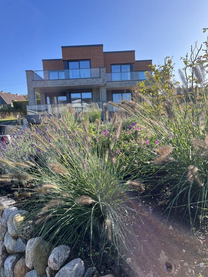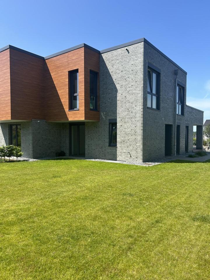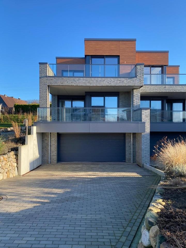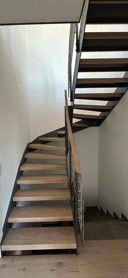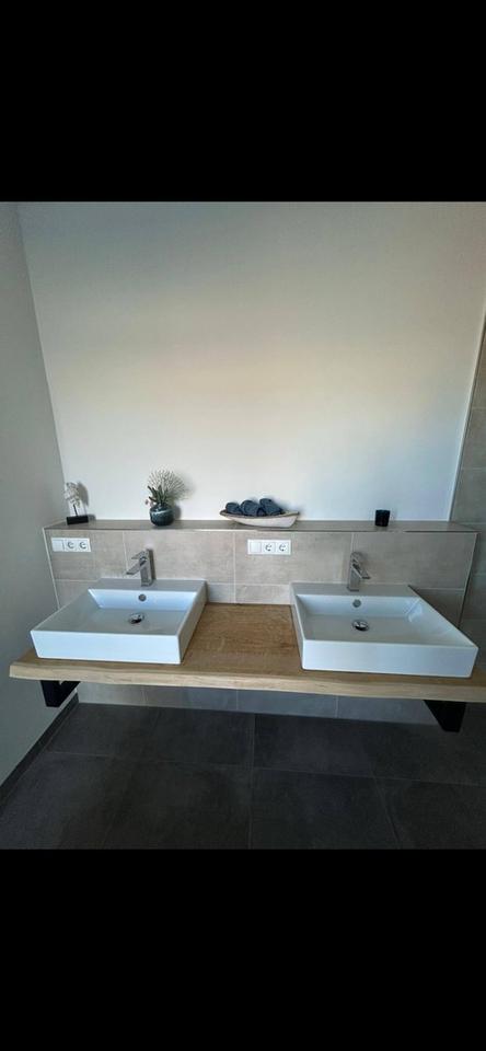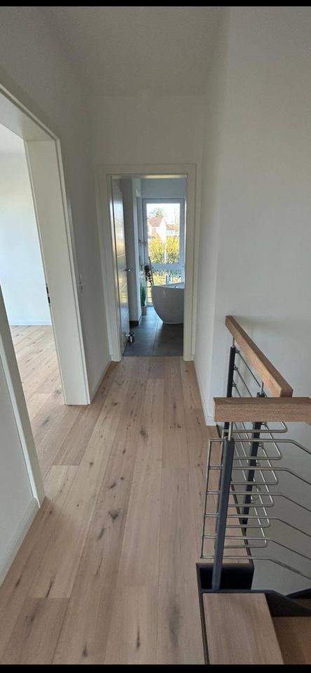 Freistehende Badewanne,Echtholz Parkett ,ebenerdige Dusche mit Regenbrause,bodentiefe Fenster,Raffstores,Stahltreppe mit Eichenholz Stufen,moderne Einbauküche,große Doppelgarage