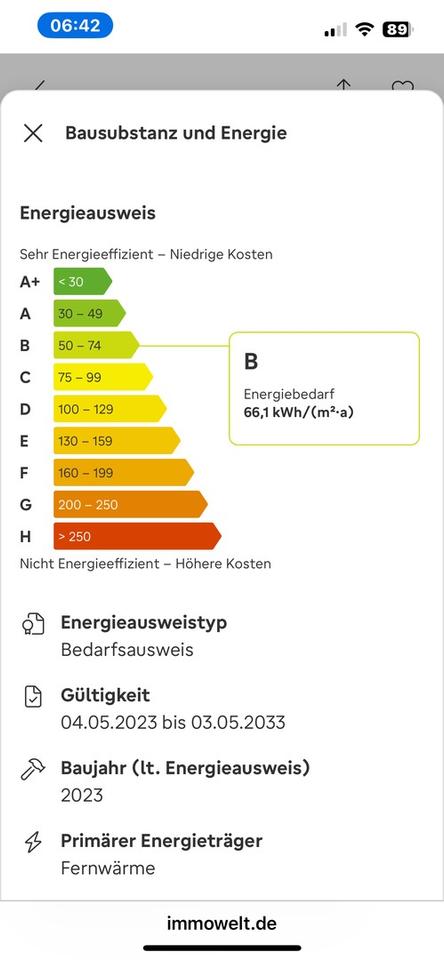 – Endenergiebedarf: 66 kWh/(m²*a)