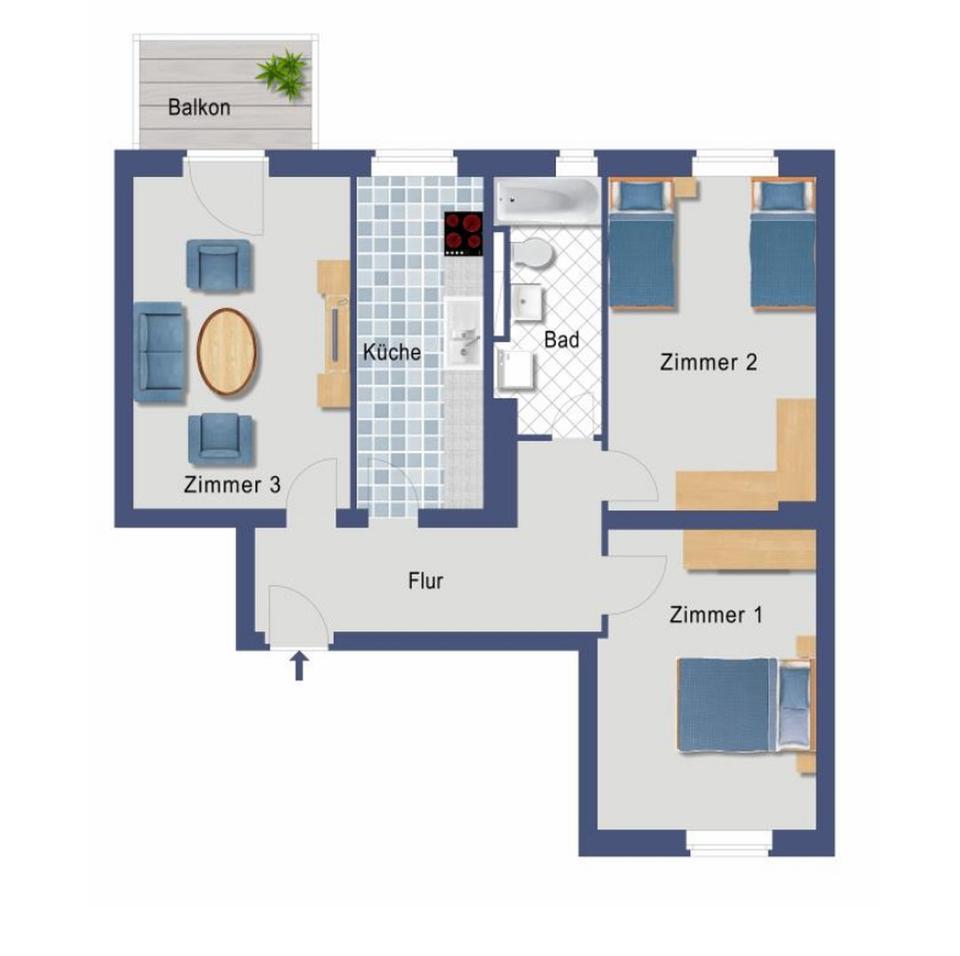 Besonders cool: Wenn du zwei Freunde hast, mit denen du schon immer zusammenwohnen wolltest, könnt ihr die Wohnung auch direkt als 3er-Gruppe mieten!