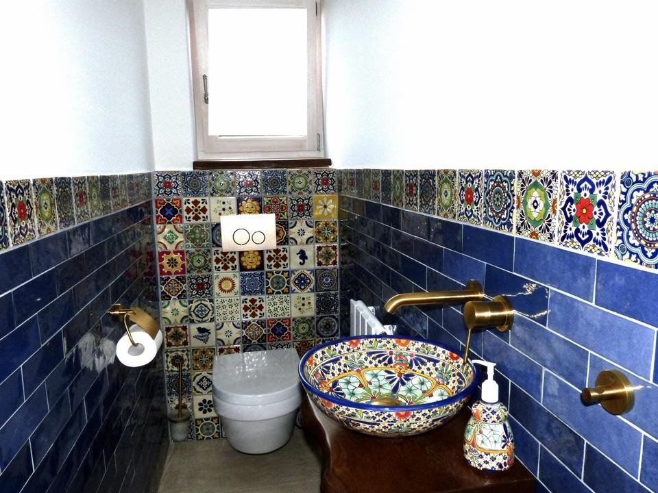 WC: handgemalte mexikanische Fliesen mit passender Waschschüssel