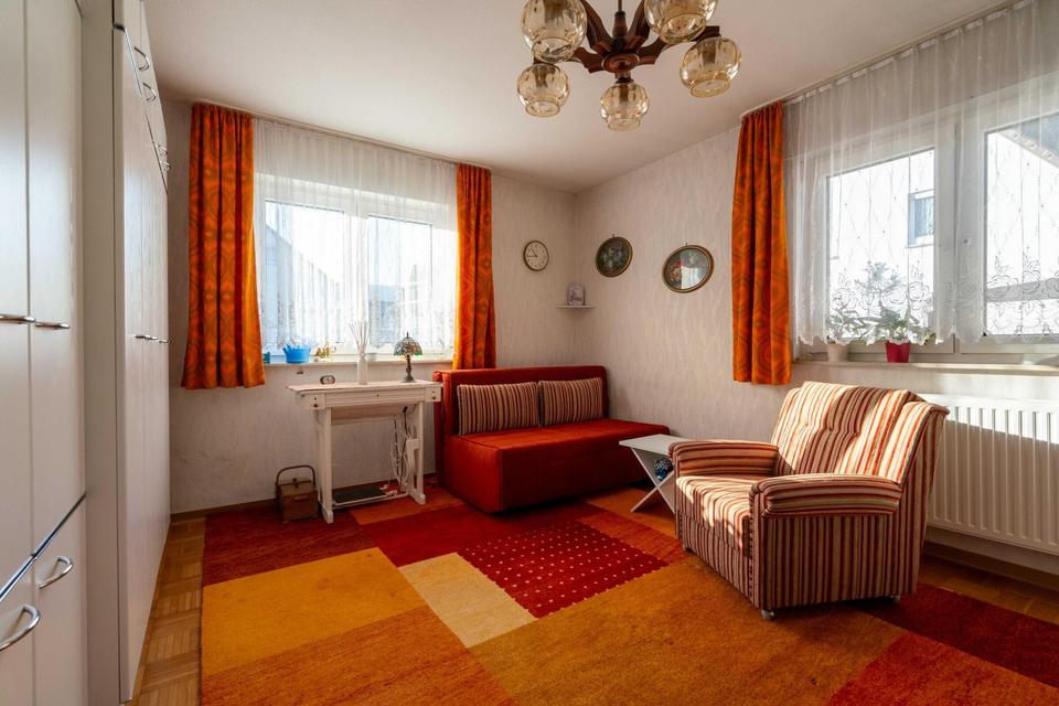 Eine große Garage mit Platz für zwei PKWs sowie mehrere Außenstellplätze stehen zur Verfügung. Die Einfahrt wurde erst kürzlich komplett erneuert. Das Objekt eignet sich ideal für Eigennutzer mit Weitblick, Mehrgenerationenwohnen oder Käufer, die heute einziehen und mittelfristig zusätzlichen Wohnraum gewinnen möchten.