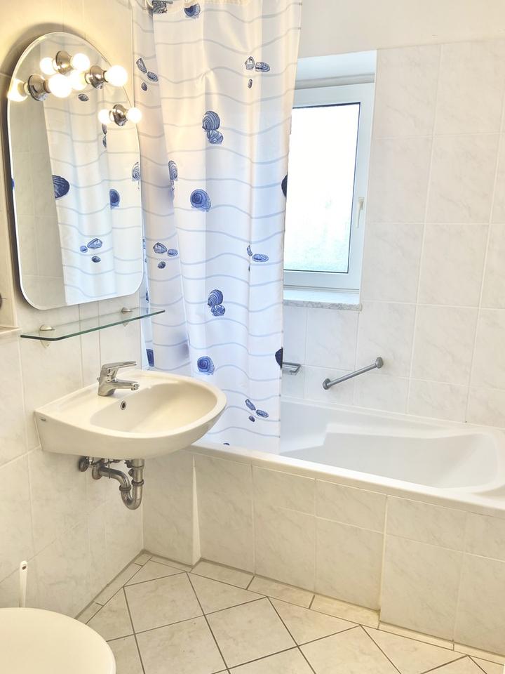 Die Wohnung verfügt über ein weiß gefliestes Tageslichtbad sowie einen sonnigen Balkon mit Südausrichtung, welcher zum Entspannen einlädt. Die Küche mit Fenster lässt keine Wünsche offen und ist komplett ausgestattet: Backofen, Cerankochfeld, Waschmaschine, Spülmaschine, Kühlschrank und Mikrowelle stehen Ihnen zur Verfügung. Einbauschränke im Flur und im Schlafzimmer bieten ausreichend Stauraum. Ein großes Kellerabteil rundet das Angebot ab.