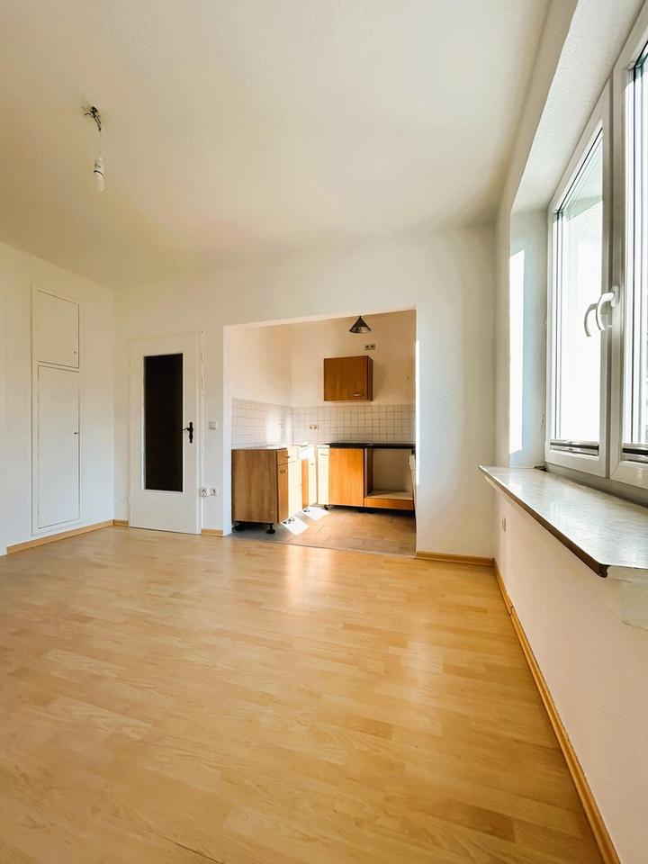 Das helle Wohnzimmer mit der angrenzenden Küche ist nach Süden ausgerichtet und bietet den ganzen Tag über eine freundliche Lichtstimmung. Das Schlafzimmer liegt nach Norden und bleibt dadurch auch im Sommer angenehm kühl.