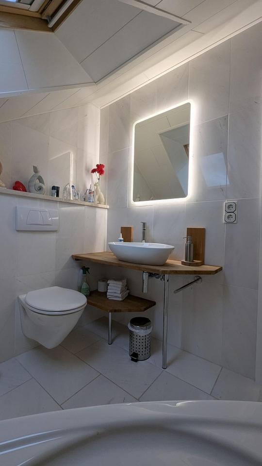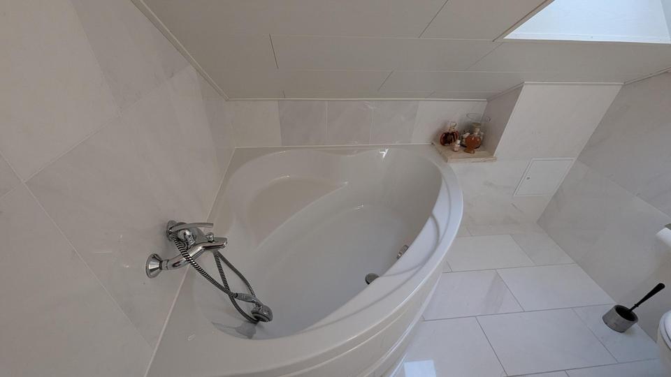 Ein weiteres Bad mit Badewanne und einem Abstellraum runden das obere Stockwerk ab.