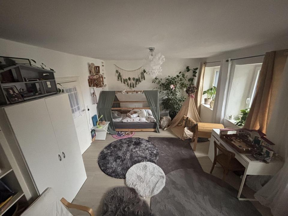 Die Kinderzimmer sind ebenfalls neu und mittels einer Schiebetür wurde eine Verbindung zwischen deren geschaffen. Über das 2. KZ (ehemaliges Heulager über Kappendecke) gelangt man zur Galerie. Diese wird momentan als Bibliothek genutzt. Anschließend betritt man das großzügige Wohnzimmer mit herrschaftlichem Sandstein-Kamin. Über diesen großen Raum kann man den Außenbereich durch ein großes Schiebeelement-Fenster betreten.