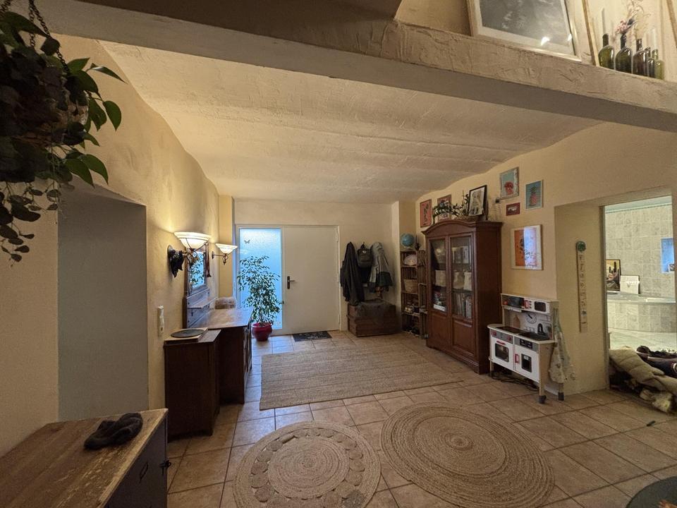 Mittels einer breiten, einladend geschwungenen Treppe erreicht man eine Galerie und einen großzügigen Wohnbereich inklu Sandstein-Kamin. Im Jahr 2021 wurde u.a. eine energetische Sanierung umgesetzt: Eine leistungsstarke Luftwärmepumpe ersetzt die vorhandene Ölheizung. Im Zuge dessen wurden div. Elektroleitungen neu verlegt und eine Wallbox installiert. Eine komplett Sanierung des DU/WC erfolgte und ein neues Eingangsportal wurde entworfen u. eingebaut.