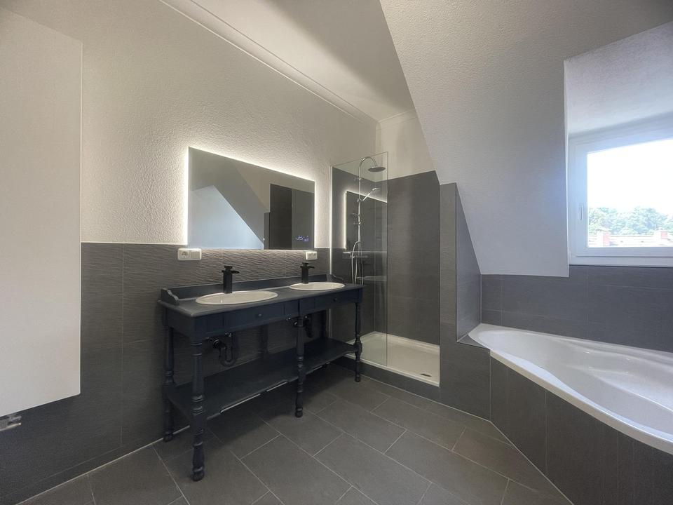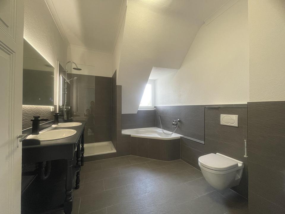 Beide Wohnungen sind neu renoviert und bieten eine Raumhöhe von 2,93 Meter. Die Bäder sind mit Dusche und Badewanne sowie mit neuen W-LAN Spiegeln ausgestattet.