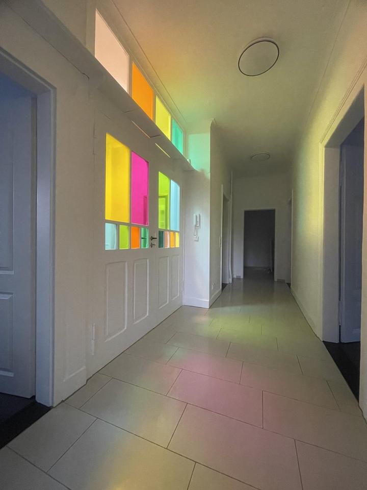 Die Treppen vom Hochparterre zum ersten Stockwerk sowie vom ersten Stock zum Dachgeschoss sind mit LED-Stripes ausgestattet.
