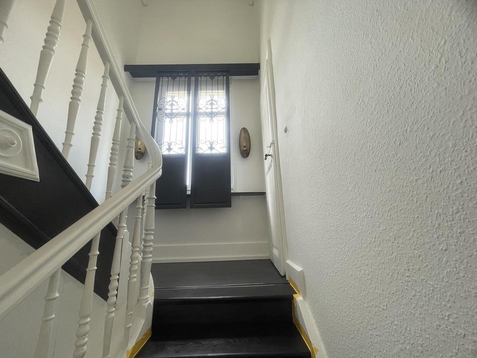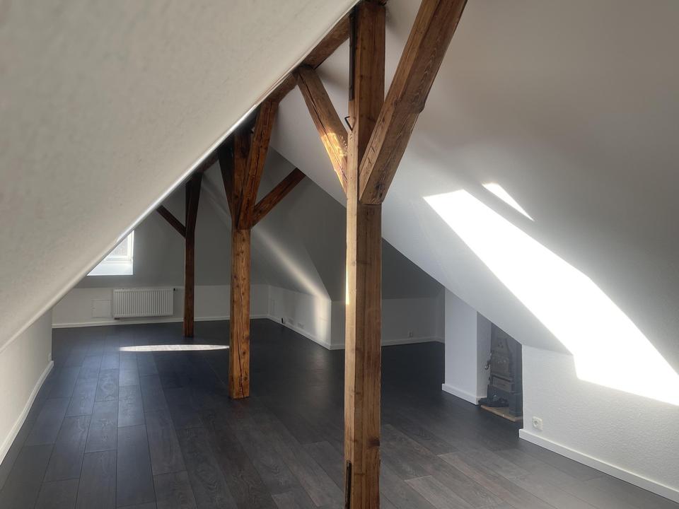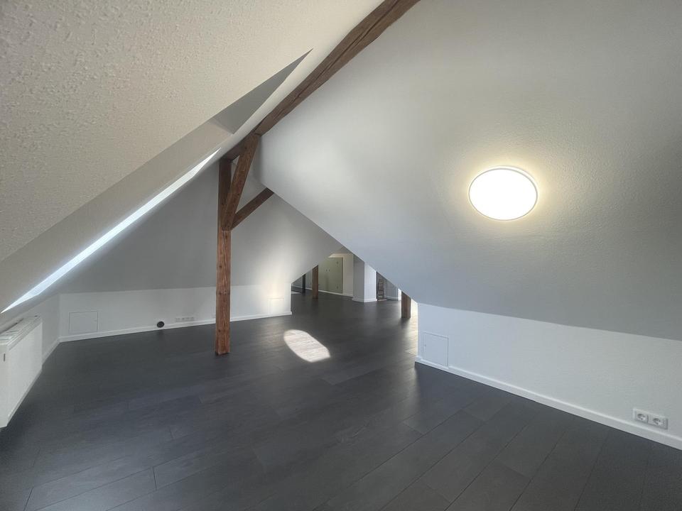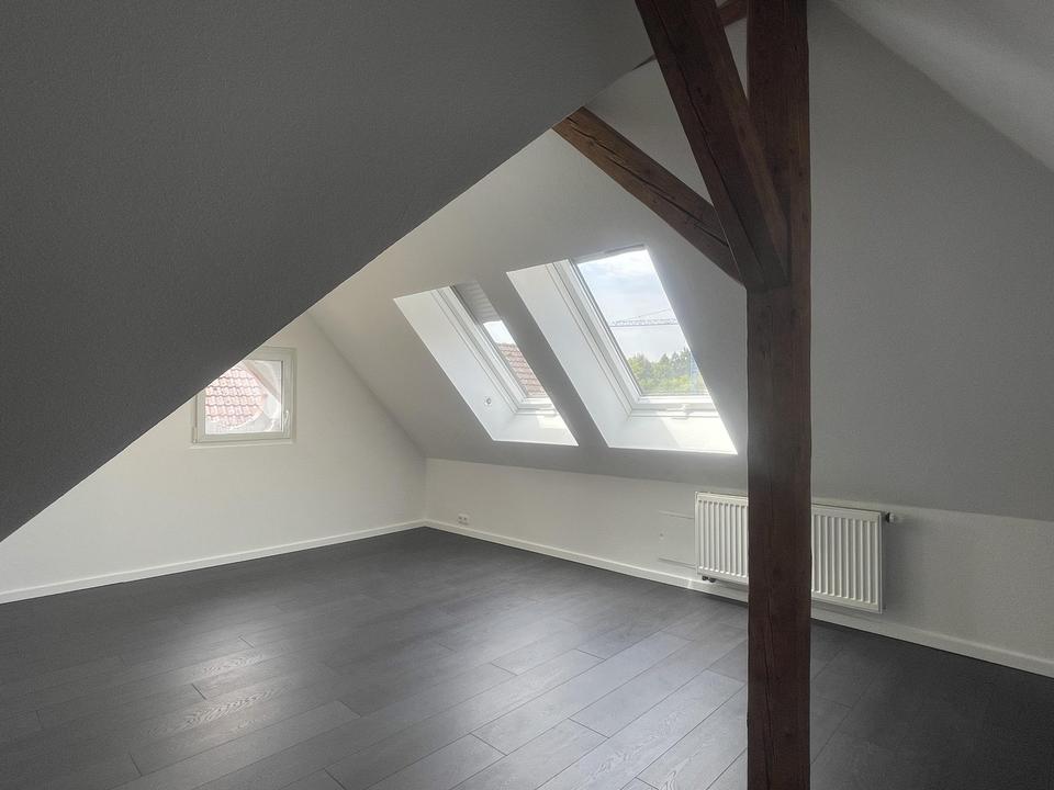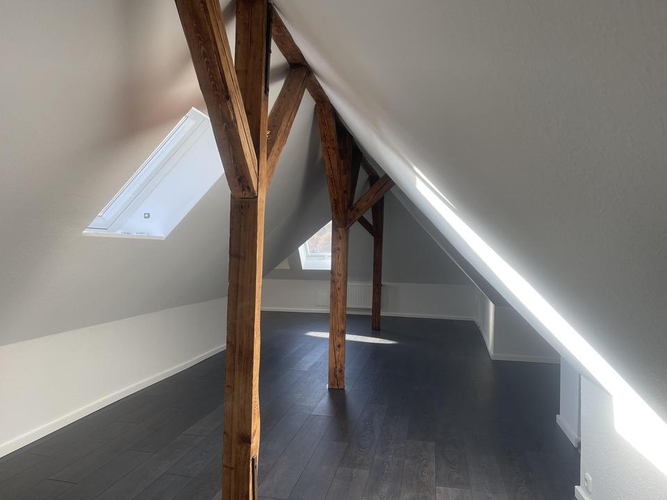 Zudem befinden sich halbgeschossig je ein Gäste WC. Von der oberen Wohnung erreicht man das Dachgeschoss, welches komplett gedämmt und renoviert worden ist. Diese Ebene bietet Ihnen einen wunderschönen Blick ins Grüne und ist als Nutzfläche deklariert. Alles wurde neu abgeschliffen und in Weiß Seidenmatt in bis zu 8 Gängen neu lackiert. Ebenfalls wurde ein neuer Laminatboden in jedes Zimmer und in das Dachgeschoss gelegt. Strom, Wasser, Heizkörper und Leitungen wurden zwischen 2007 und 2009 bereits ausgetauscht das Dachgeschoss wurde ebenfalls in diesem Zeitraum komplett neu aufgebaut.