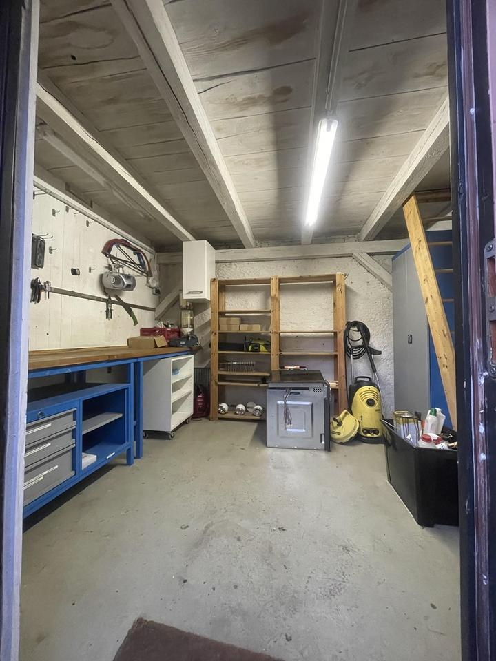 Gartenraum, Werkstatt, Überdachte Terrasse, Mülltonnenraum. Zudem ist der gesamte erste Stock voll als Lagerfläche zu nutzen.