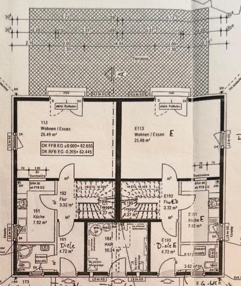 Fast alle Räume verfügen über Tageslicht; im Erd- und Obergeschoss sorgen Außenjalousien für Komfort und Privatsphäre. Beheizt wird das Haus mit Gas, die Warmwasserbereitung wird umweltfreundlich durch Solarthermie unterstützt.