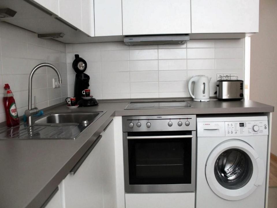 Beide Zimmer sind zum Innenhof ausgerichtet, wodurch die Wohnung trotz ihrer Top-Zentrallage erstaunlich ruhig bleibt. Das Wohnzimmer bietet großzügig Platz für einen Essbereich, während das Schlafzimmer hat ein Doppelbett und Kleiderschränke. Die Küche ist hochwertig ausgestattet mit Kühlschrank, Geschirrspüler, Backofen mit Ceranfeld, Waschmaschine, Kaffeemaschine, Wasserkocher, Toaster und allen notwendigen Küchenutensilien – alles in neuwertigem Zustand nach der Sanierung. Vom Wohnbereich gelangen Sie direkt auf den Balkon, der sich perfekt für einen kleinen Tisch oder zur Erholung eignet.