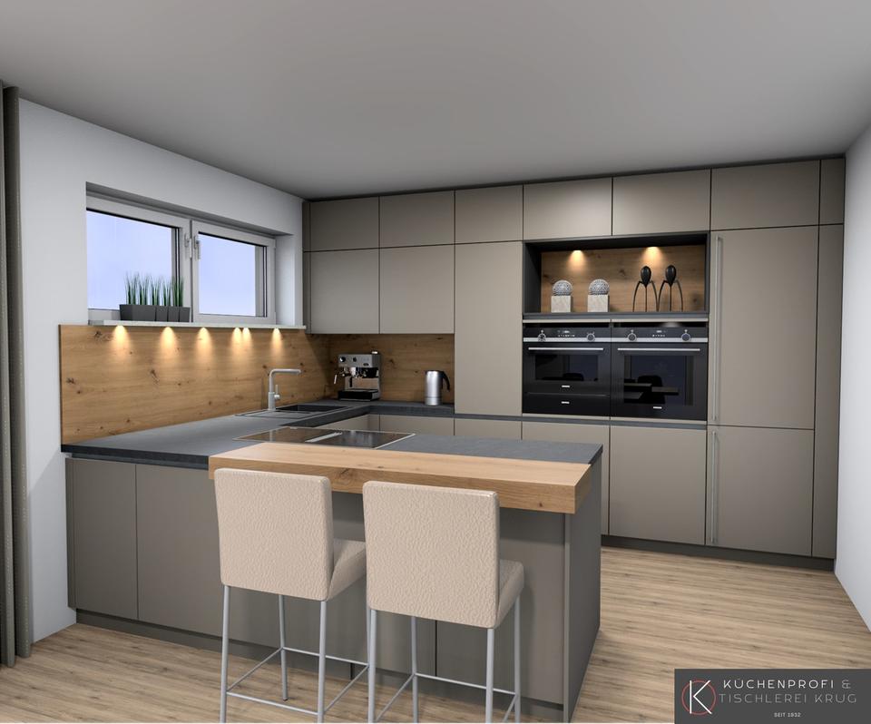 – offenes Wohnzimmer mit U-Einbauküche inkl. Tresen
