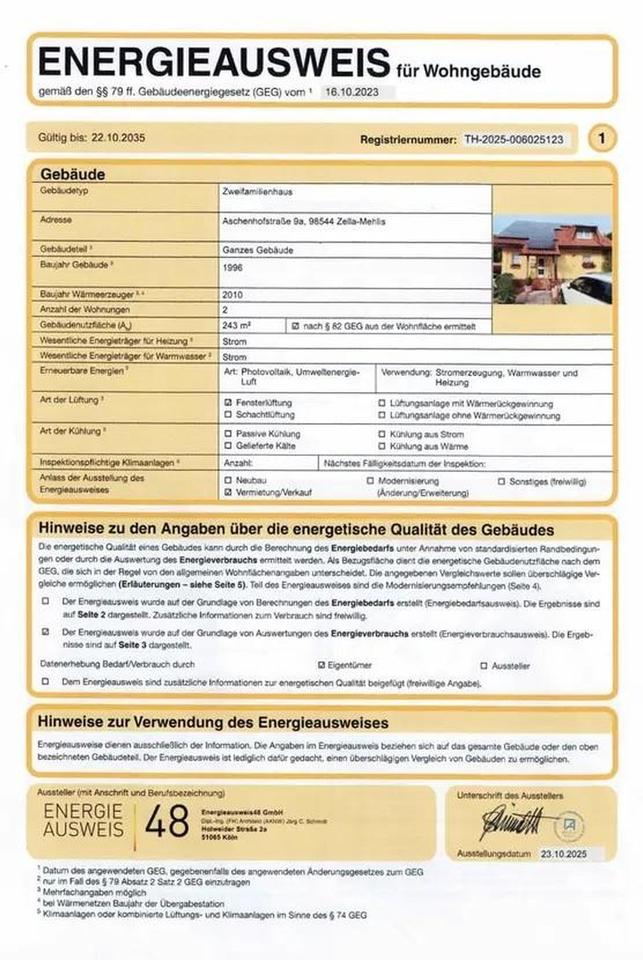 Nachhaltiger Luxus trifft auf maximale Unabhängigkeit. Vergessen Sie steigende Energiekosten! Dieses erstklassig gepflegte Einfamilienhaus in ruhiger Lage von Zella-Mehlis (OT Benshausen) bietet Ihnen ein autarkes und komfortables Zuhause. Dank der hervorragenden Energieeffizienzklasse A und modernster Haustechnik wohnen Sie hier nahezu unabhängig von externen Energieversorgern.