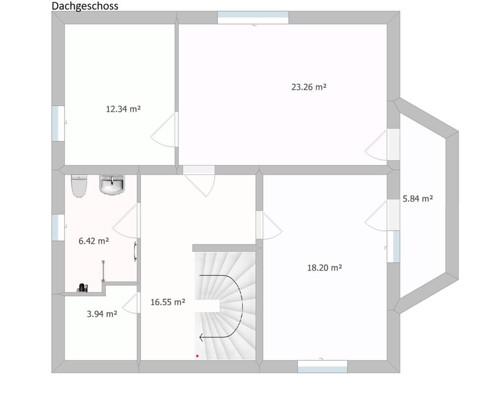 1 ruhiges, Zimmer (ca. 12 m² Grundfl. mit Dachschräge), z.B. zweite Küche (Anschlüsse vorhanden), Büro etc.