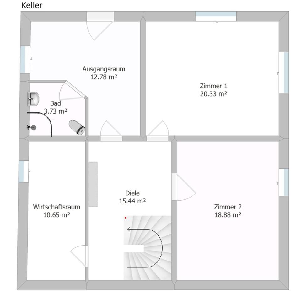1 Raum (ca. 15 m²) perfekt für die Einrichtung einer Sauna, Fitnessraum oder Hobbybereich.