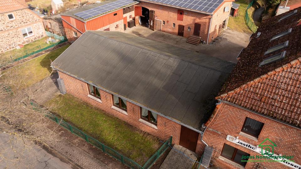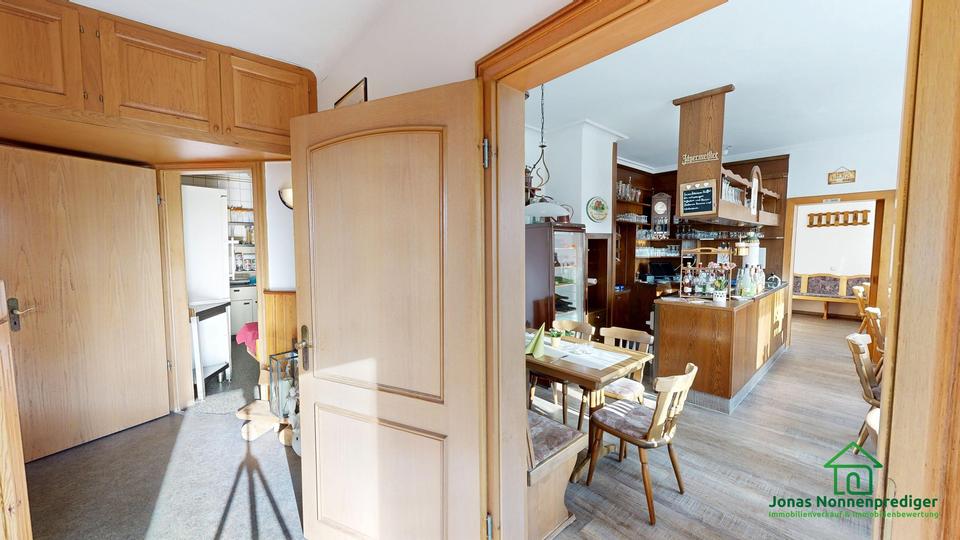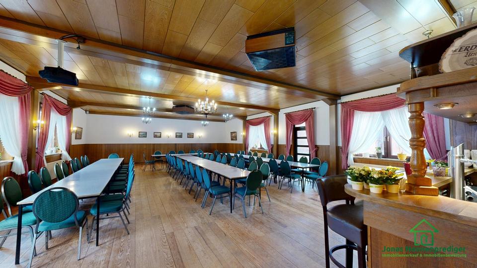 Die Wohnfläche des Hauses beträgt ca. 173 m². Ergänzt wird das Raumangebot durch eine Gewerbefläche von ca. 273 m² (Restaurant) sowie eine Nutzfläche von ca. 189 m² im Nebengebäude. Das Objekt eignet sich sowohl zur weiteren Nutzung als Zwei- oder Einfamilienhaus mit Gastronomiebetrieb als auch zur vollständigen Umnutzung in reines Wohnen, vorbehaltlich entsprechender Genehmigungen.