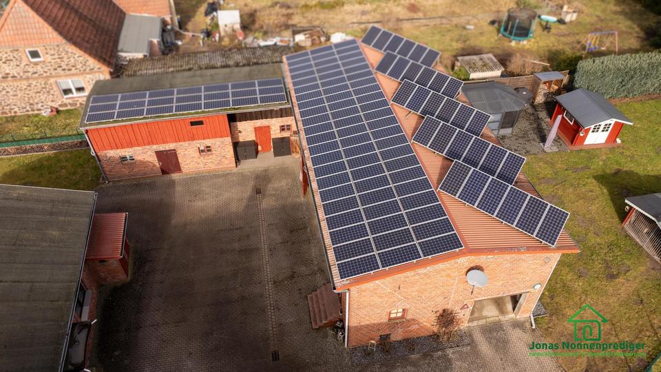 Zur besonderen Ausstattung zählen eine Photovoltaikanlage, ein Swimmingpool im Garten, Einbauküchen sowie eine voll ausgestattete Gastroküche im Gewerbebereich. Das Grundstück bietet zudem großzügige Parkmöglichkeiten mit vier Garagenstellplätzen und neun zusätzlichen Stellplätzen im Freien.